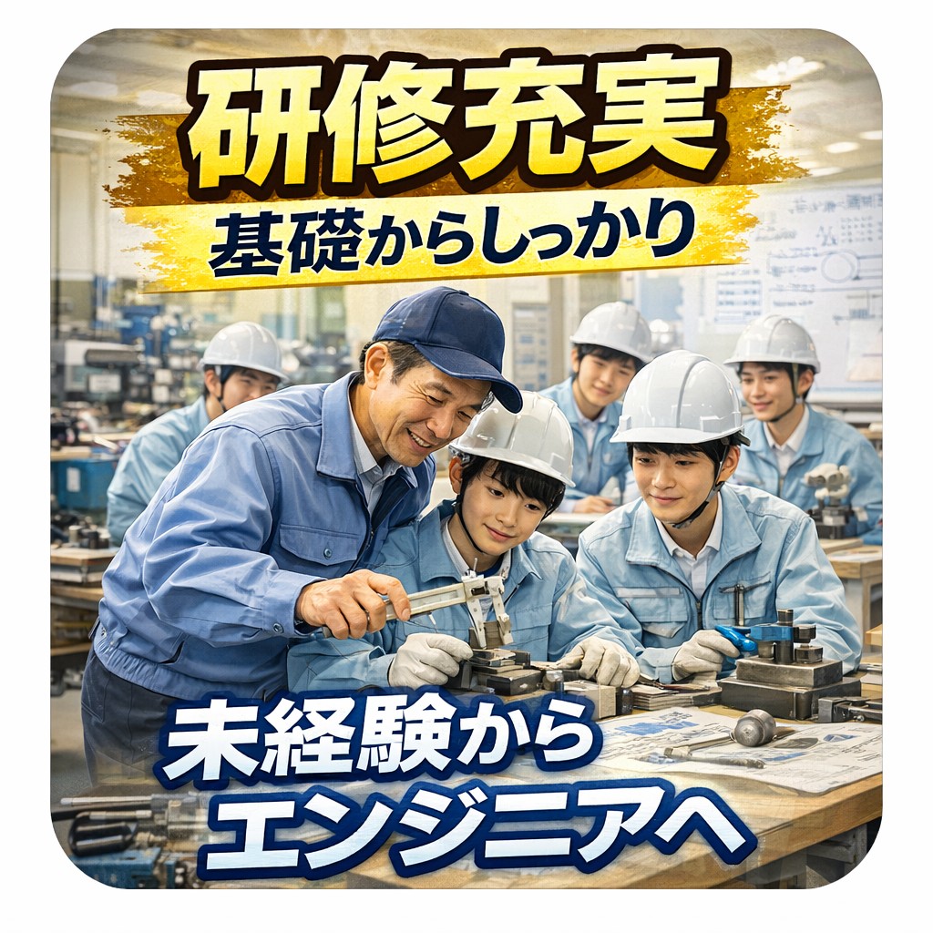 未経験からモノづくりの基本、製品量産、新製品の開発、機械装置、ロボット、電気知識、エンジンなど用語から構造まで1から研修を1週間程度行い、就業していただきます。