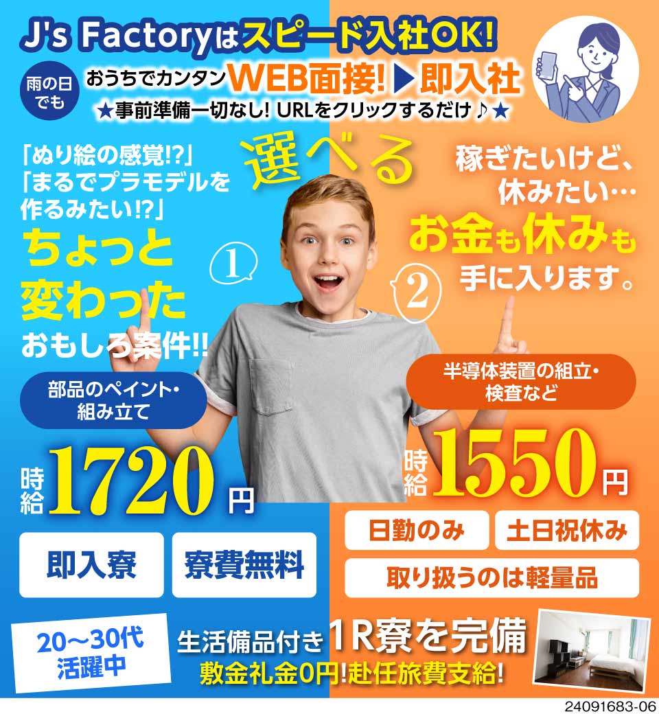 | 職種 | 【寮費補助あり】装置組立スタッフ日勤のみ/土日祝休み/未経験OK |