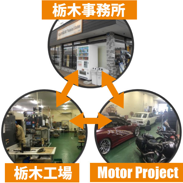 また、レストアなどの事業を進めております Motor Projectの部署も宇都宮市に構えており、当社の中でも唯一同じ地域に3つの事業を展開しております。